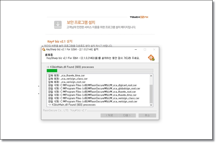 다만, 처음 접속하시는 분이라면 별도의 인증 프로그램을 설치하셔야 합니다. 순서대로 설치를 진행합니다.