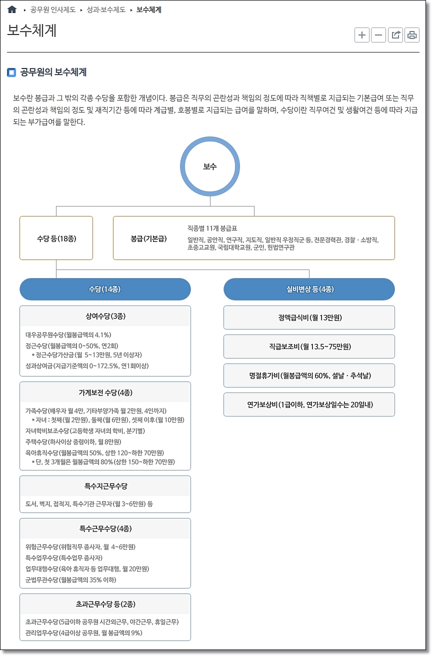 봉급계급별, 호봉별 정해진 금액으로 지급되는 기본급이라고 생각하시면 됩니다. 수당직무여건이나 생활여건에 따라 다르게 책정되는 보너스 개념이라고 보시면 됩니다.